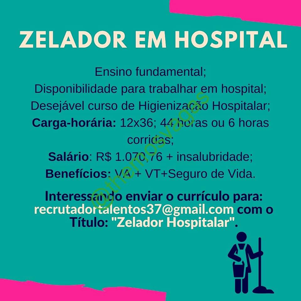 – Interessados(as) e que atendam ao perfil solicitado acima, devem enviar o currículo para o e-mail recrutadortalentos37@gmail.com contendo no título/assunto “Zelador  THE